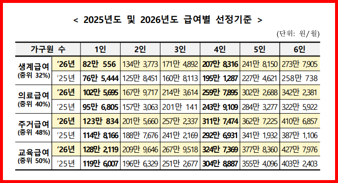 보건복지부가 발표한 2026년도 기준 중위소득과 급여별 선정기준이 큰 폭으로 인상되며, 더 많은 국민이 기초생활보장 제도의 보호를 받을 수 있게 되었습니다.