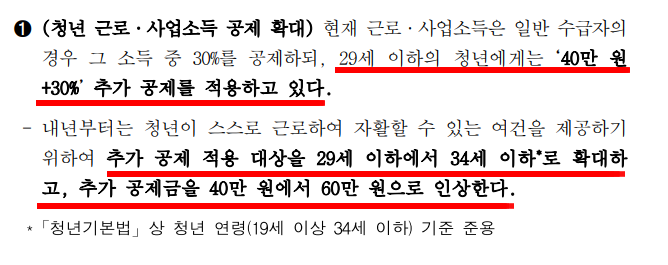 현재 청년(29세 이하)에게는 ‘40만 원 + 30%’ 추가 공제가 적용되고 있습니다.